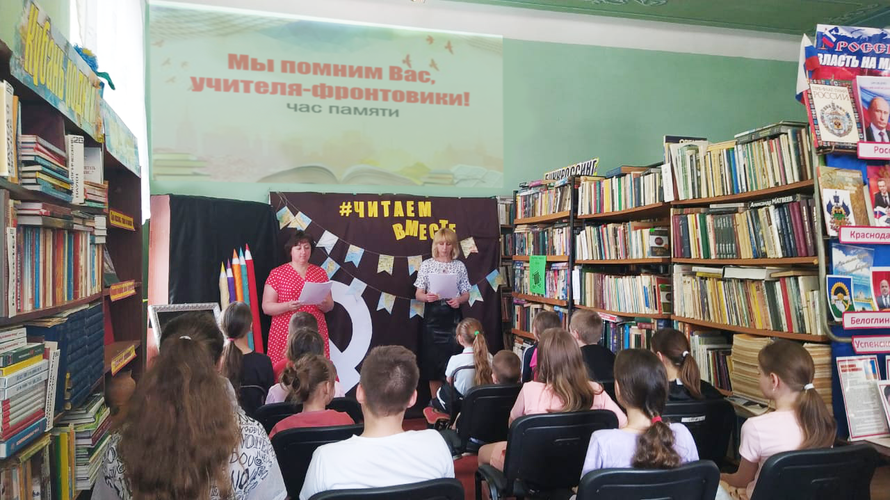 С целью глубочайшего уважения к учителям, совершившим славные подвиги в сражениях Великой Отечественной войны и после ее победоносного завершения вернувшиеся к педагогическому труду и с целью знакомства детей и подростков с нелегкой судьбой туркинских учителей, проявивших во время войны свои лучшие качества патриота, гражданина, человека, тех, кто воевал и возвратившись с фронта, продолжил педагогическую деятельность, в Туркинской библиотеке , филиал №1 прошел час памяти «Мы помним Вас, учителя-фронтовики».