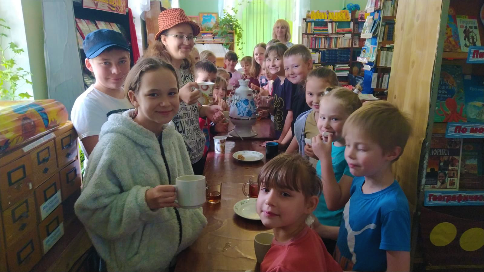В заключении Туркинской библиотекой , филиал №1 для участников акции «Библионочь» «Читаем вместе» было устроено чаепитие «Чайку попить? Это вам в библиотеку!» со сладким угощением