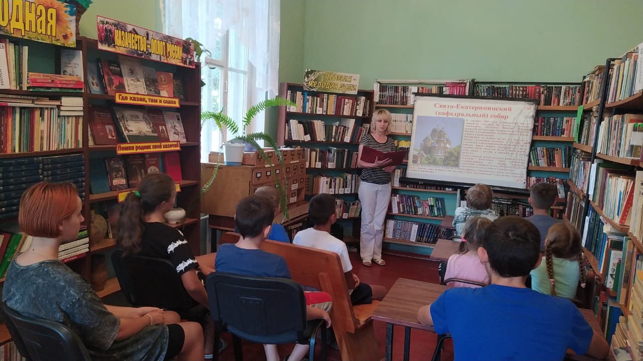 В целях сохранения и продвижения исторических, культурных и духовных ценностей, укрепления имиджа Кубани, привития чувства любви к малой родине, народным традициям, познания исторического прошлого 16 сентября 2022г в рамках проекта «Моя Кубань –души отрада» в Туркинской библиотеке, филиале №1 был проведен час духовной культуры «Златые купола задумчивых церквей»