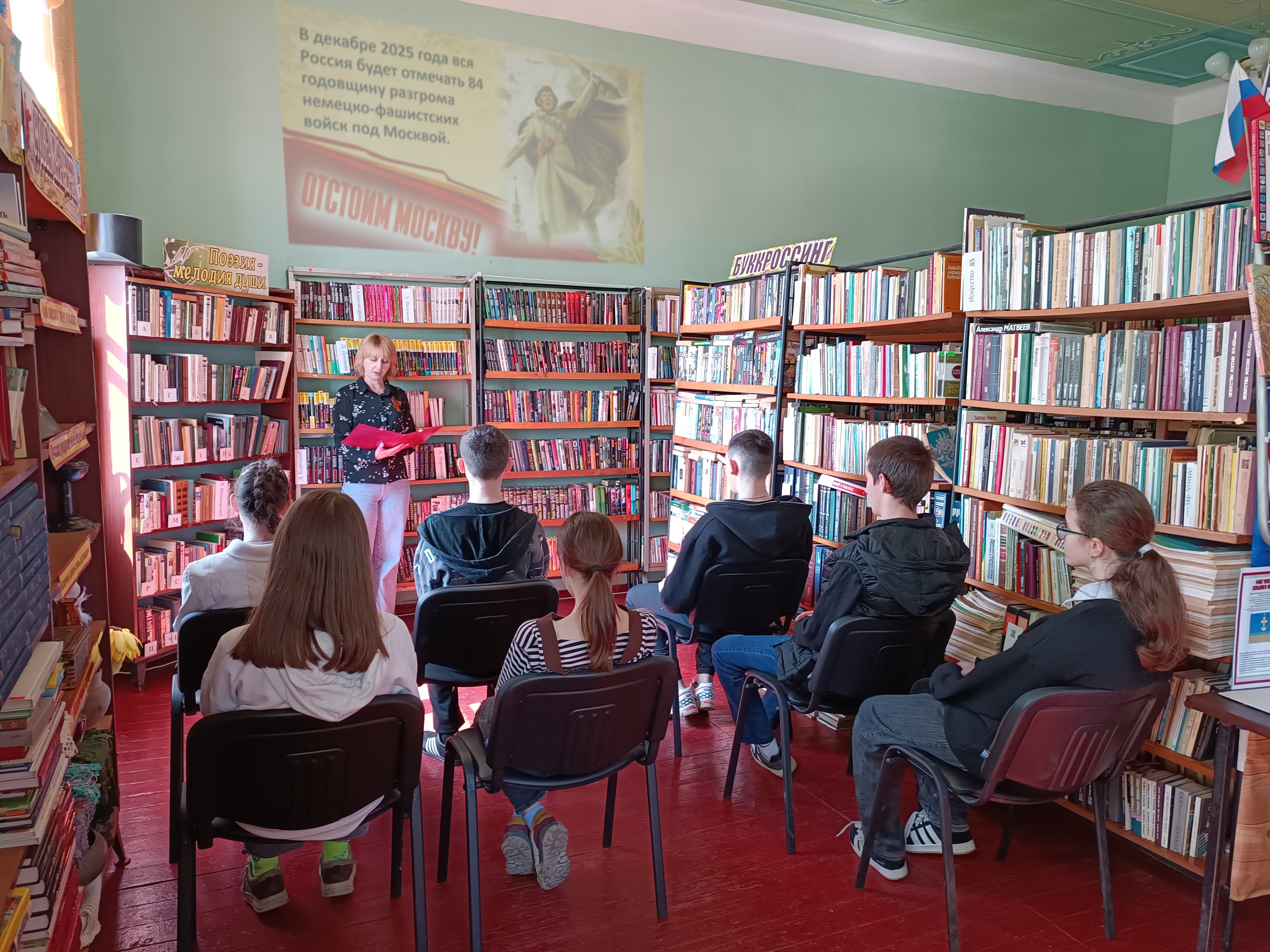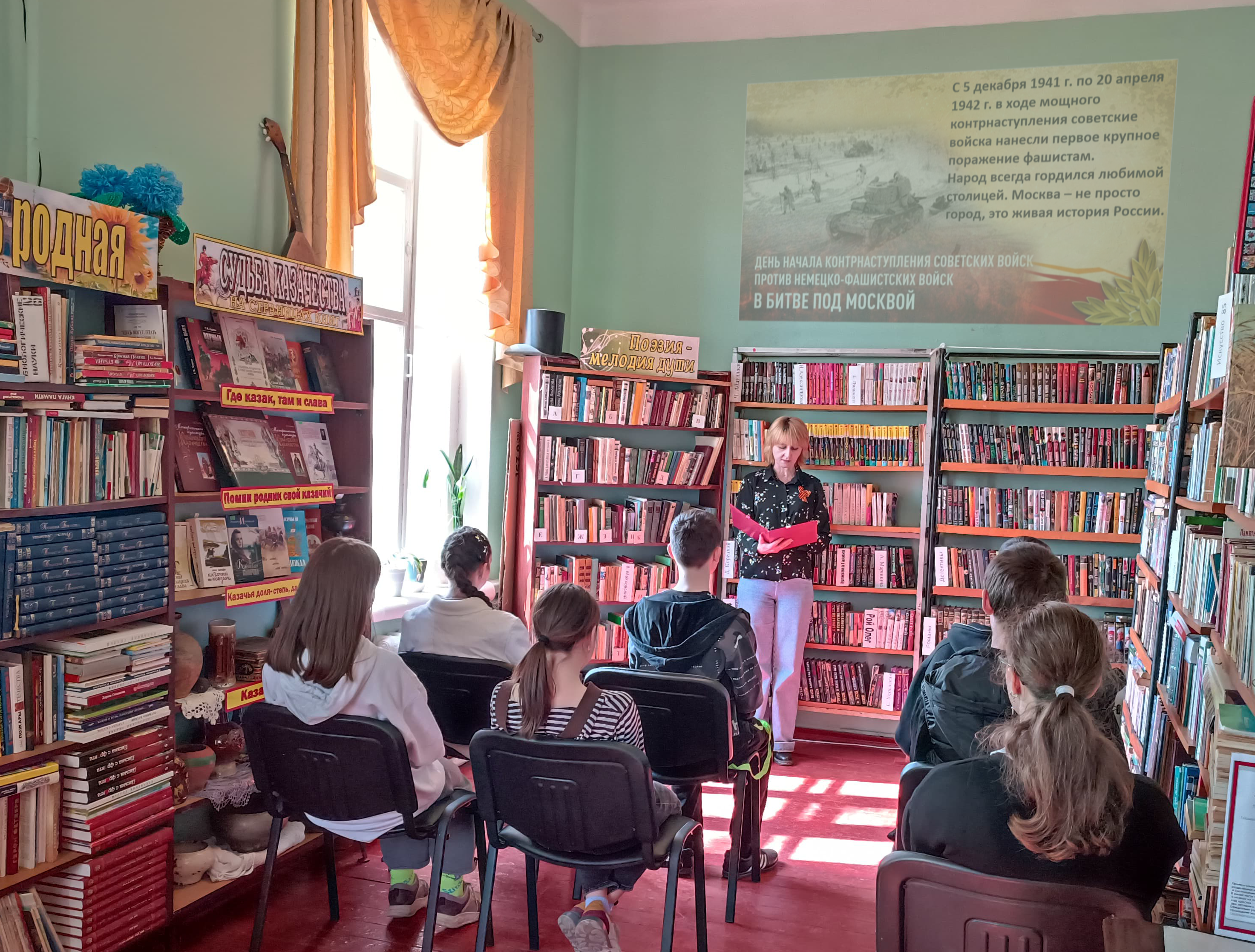 В рамках историко-просветительского проекта «Плацдармы Великой войны» в Туркинской библиотеке, филиал №1 для юношества 10 апреля 2025г был проведен час исторической памяти «Заря Победы – битва за Москву».Участники мероприятия познакомились с основными этапами сражения, с мужеством и героизмом защитников Москвы, а также узнали о значении Московской битвы в ходе второй мировой войны.