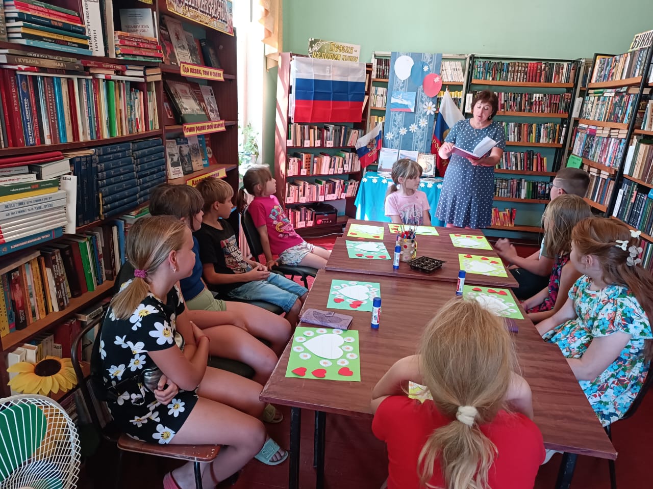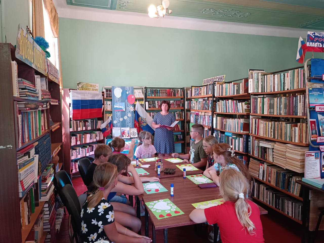 В этот день в Туркинской библиотеке, филиале №1 был проведен час истории «Наш флаг – наш символ». В начале мероприятия библиотекарь рассказала ребятам историю возникновения праздника – Дня Государственного флага России, который с 1991 года отмечается ежегодно 22 августа. Дети узнали, что такое государственные символы, зачем они нужны, как появились и как менялись в течение многих веков. Юные читатели узнали значение цветов государственного флага, исполнили гимн России.