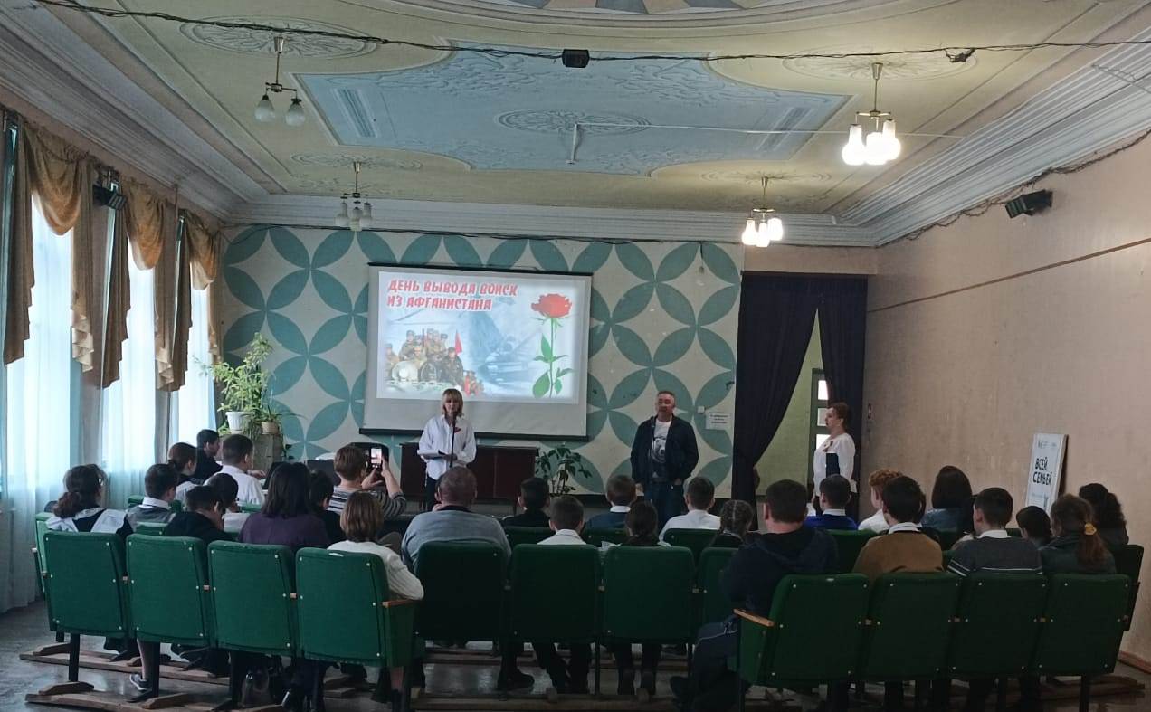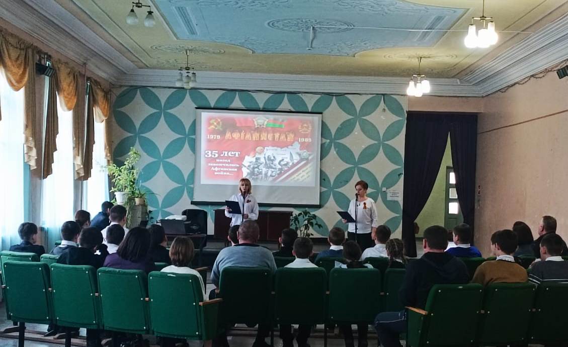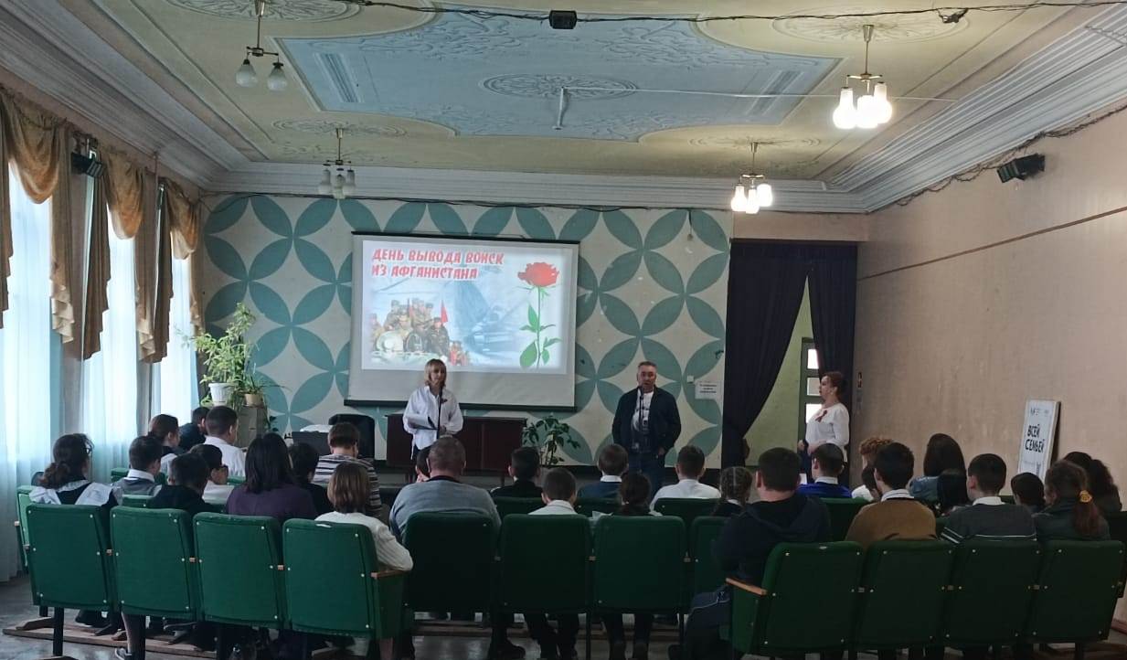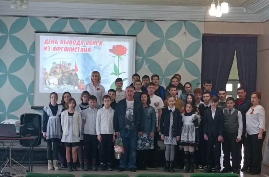 На встречу был приглашен: воин – интернационалист, участник боевых действий в Афганистане Гречищев Владимир Николаевич. Он поделился воспоминаниями о боевом прошлом, о погибших товарищах, о долгожданных днях возвращения домой. Память о погибших почтили минутой молчания.