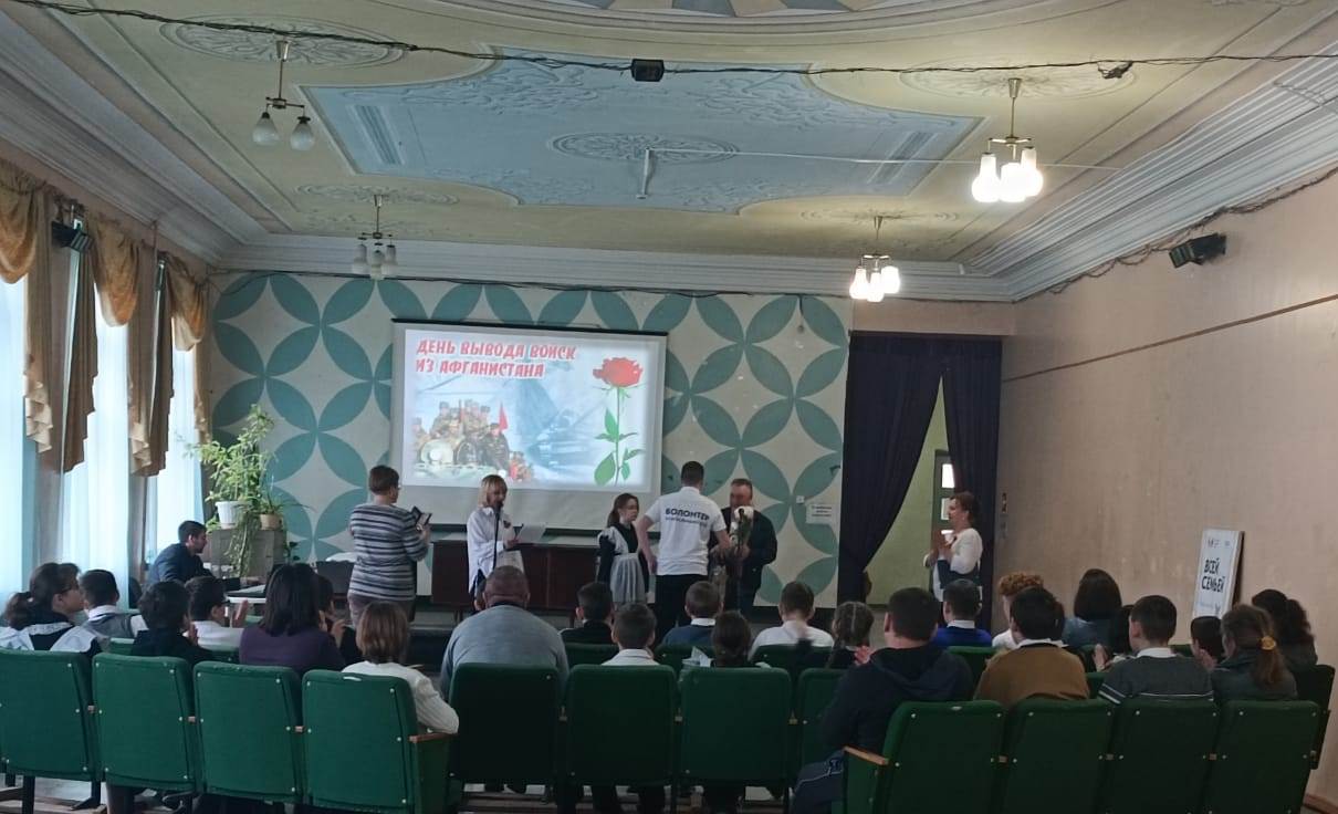 Проведенное мероприятие не оставило равнодушной молодежную и взрослую аудиторию и вызвало отклик в сердцах присутствующих. Каждое время рождает своих героев, но подвиг во все времена стоял на высоком нравственном пьедестале, венчая собой лучшие качества человека: патриотизм, интернационализм, которые всегда были присущи нашему народу.