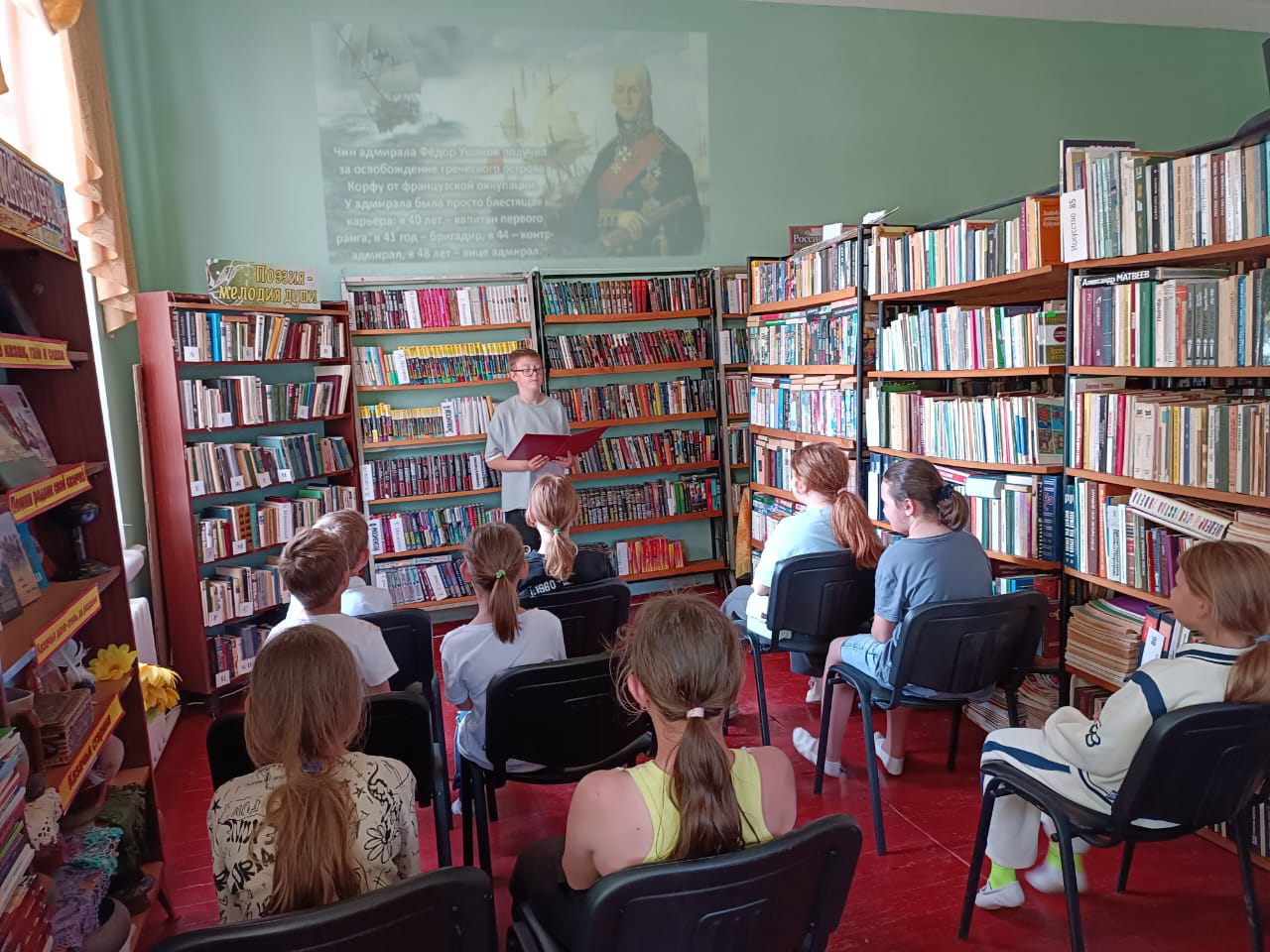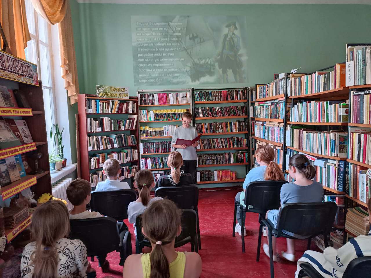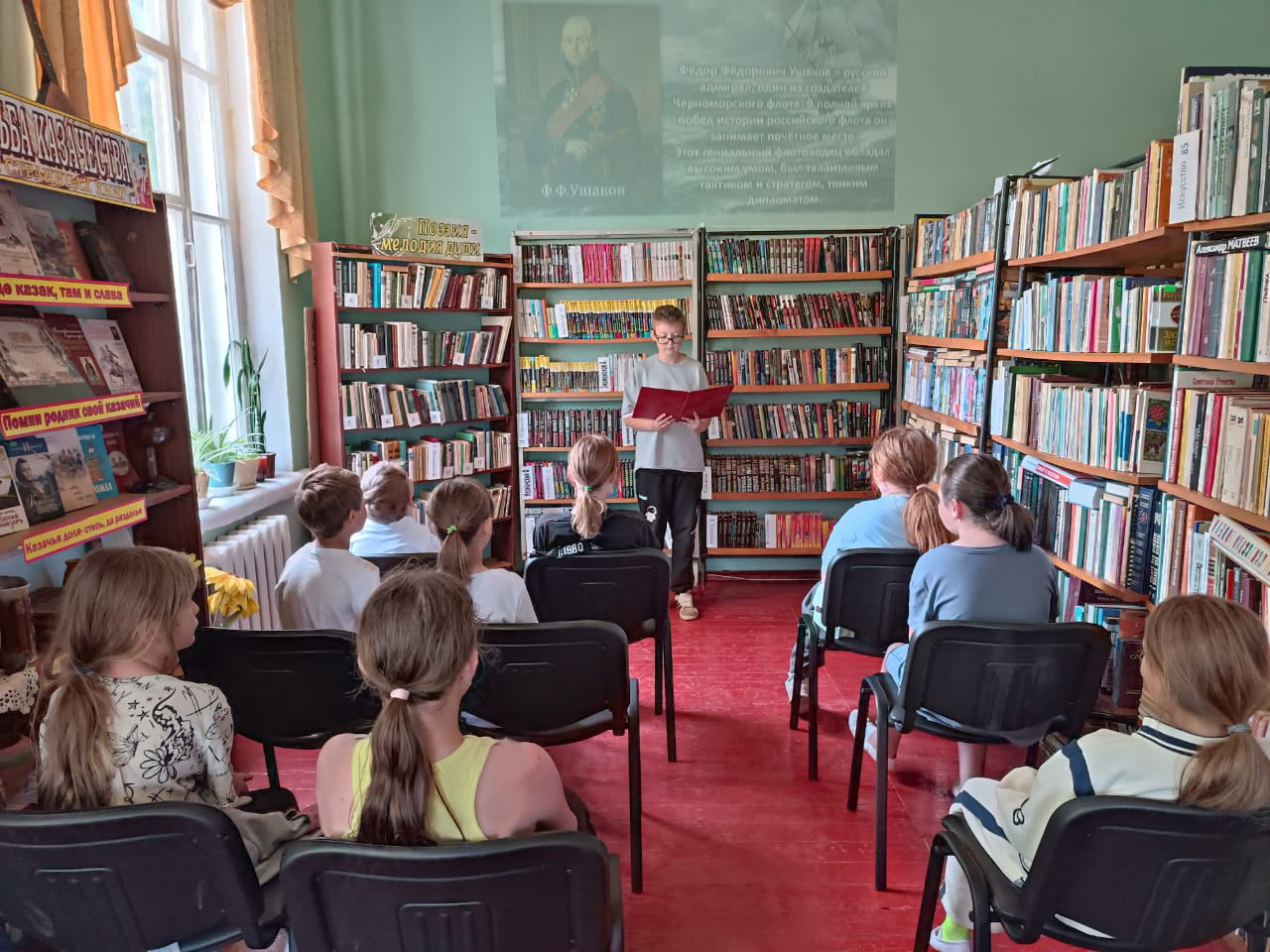 В 2025 году исполнится 280 лет со дня рождения великого адмирала Фёдора Ушакова. В рамках краевого марафона «Вместе мы крепкая сила» волонтером Саркисян Игорем был подготовлен и проведен час памяти «Непобедимый адмирал России». Юных читателей ждало знакомство с биографией великого флотоводца и удивительными фактами его военной деятельности. В ходе мероприятия ребята узнали о прославленном командующем Черноморским флотом, русской эскадрой в Средиземном море, выдающемся адмирале. Узнали какими сражениями славится адмирал, как он тренировал своих матросов и спасал команду от болезней и почему он был причислен к лику святых.