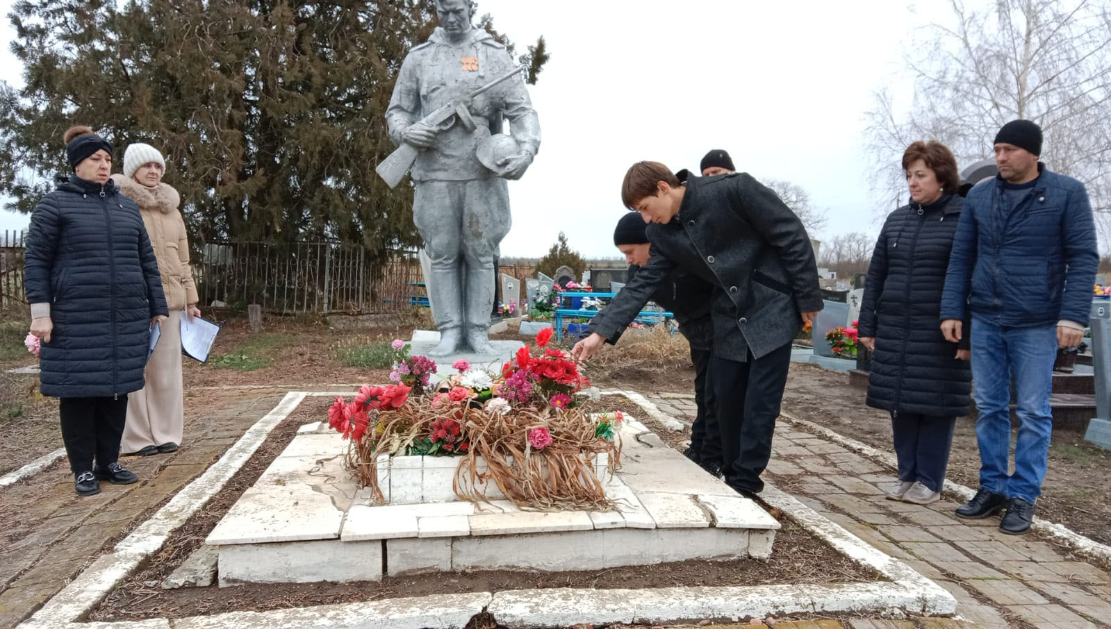 Память погибших почтили минутой молчания и возложением цветов к памятнику.