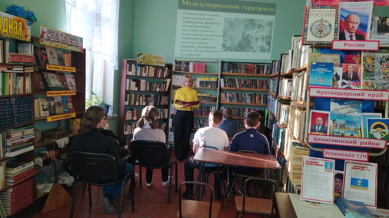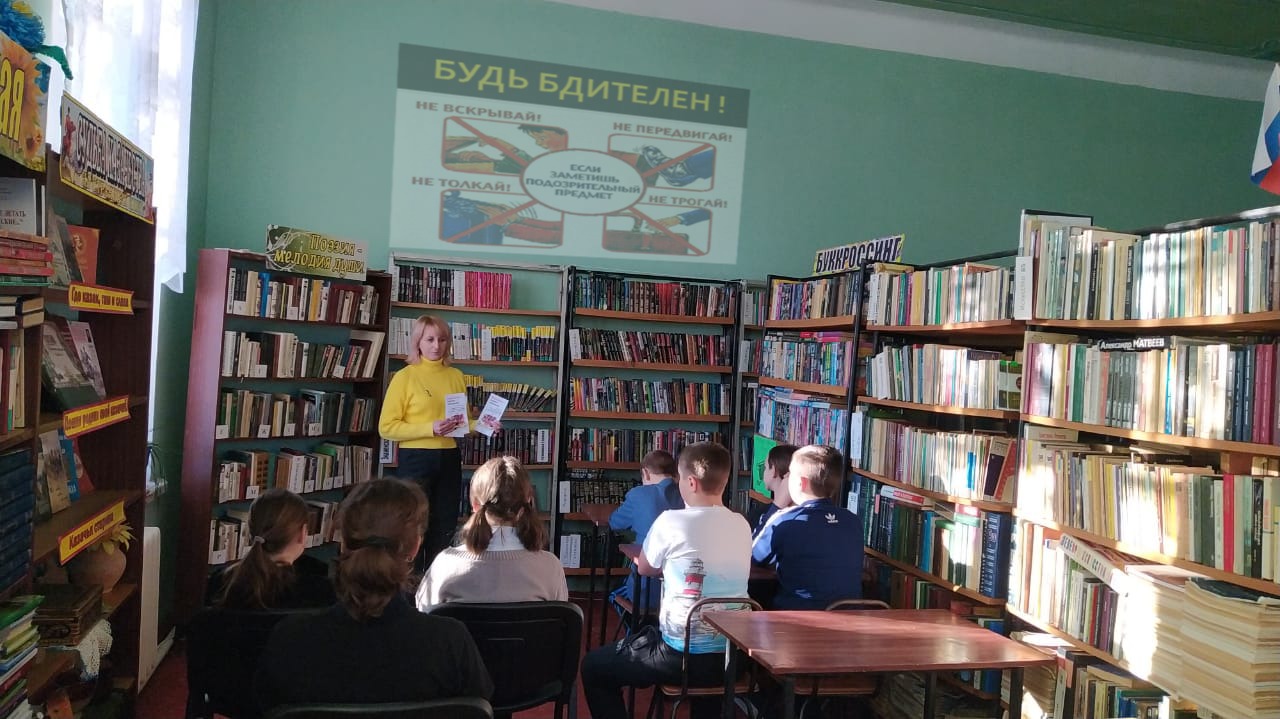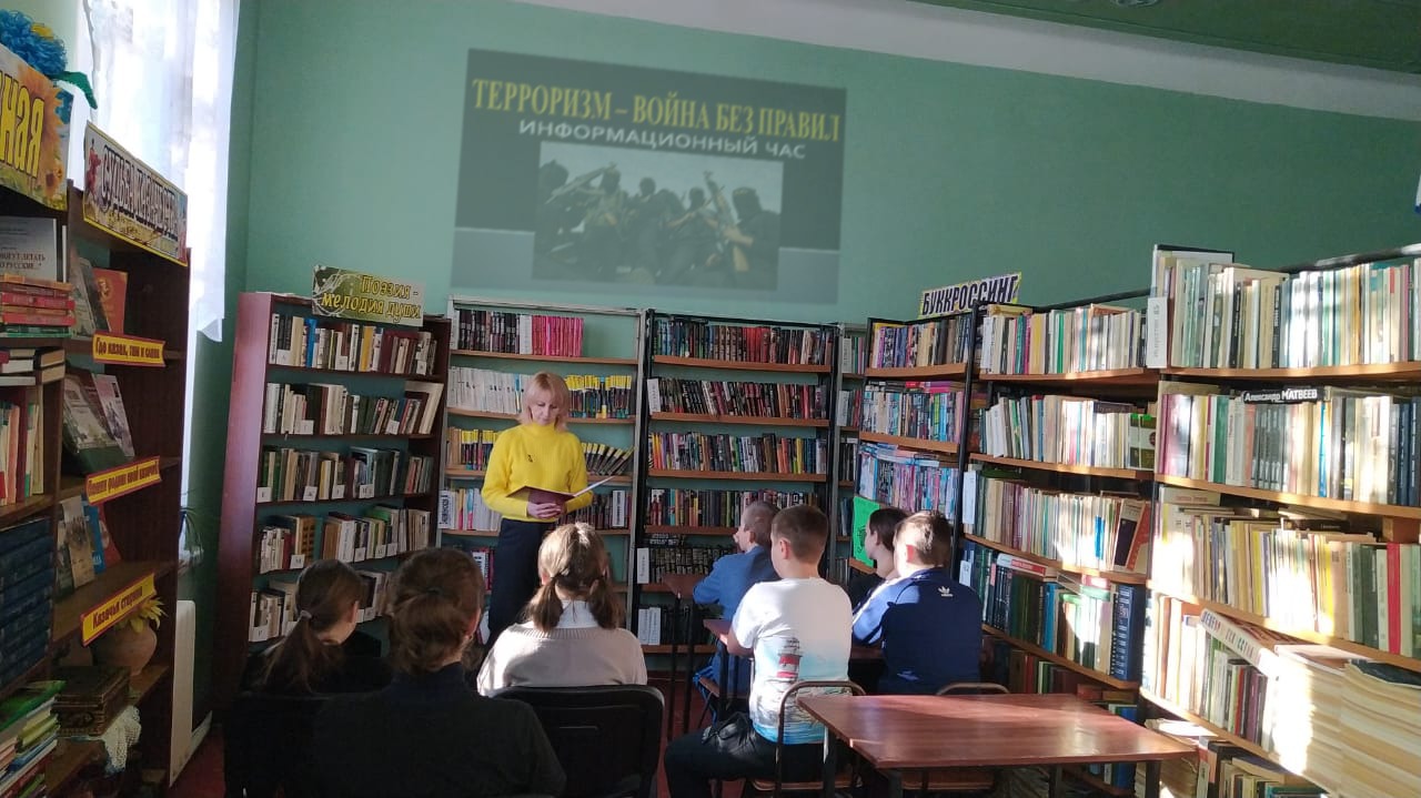 1 февраля 2024г в рамках мероприятий по профилактике террористических и экстремистских проявлений в Туркинской библиотеке, филиал №1 был проведен информационный час «Терроризм – война без правил». Посетителям была представлена информационная презентация с кратким сообщением о том, что такое терроризм и почему он является одной из самых опасных и масштабных угроз человеческой жизни, а так же о правилах поведения в ситуациях, связанных с терроризмом. Завершилось мероприятие раздачей буклетов.