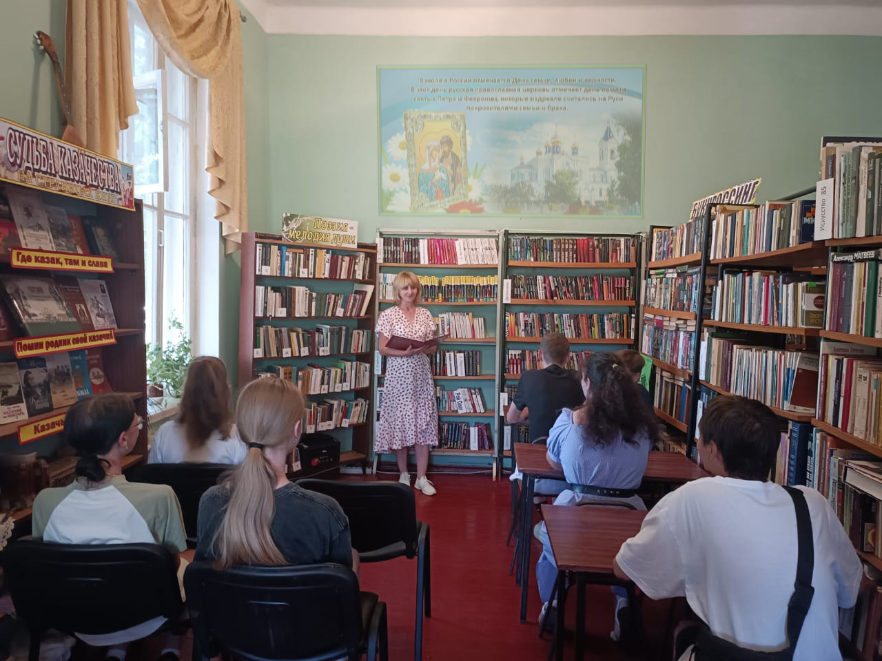 В Туркинской библиотеке, филиале №1 для юношества 5 июля была проведена интеллектуальная викторина «Живет в веках любовь и верность». Библиотекарь рассказала присутствующим об истоках и традициях этого праздника. Участники мероприятия узнали необыкновенную историю о Петре и Февронии Муромских, являющихся покровителями семейных ценностей в нашей стране, ответили на шутливые и серьезные вопросы викторины, связанные с семьей, свадебными обрядами и литературой на эту тему.