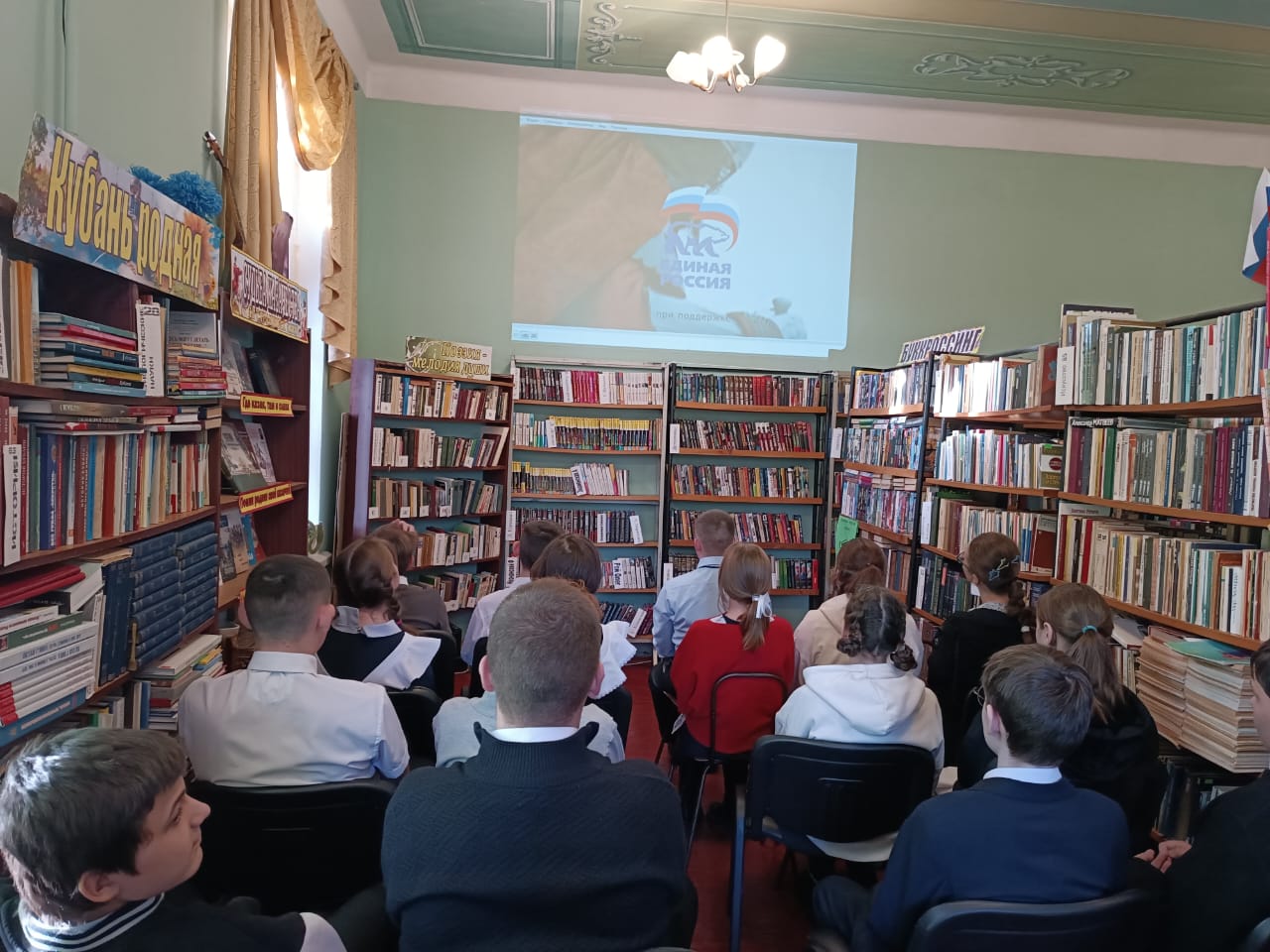 6.12.2024г в Туркинской библиотеке, филиал №1 в рамках Молодежного патриотического проекта «ПОТОМКИ ПОБЕДИТЕЛЕЙ» состоялся кинопоказ «Героям Специальной военной операции посвящается…».