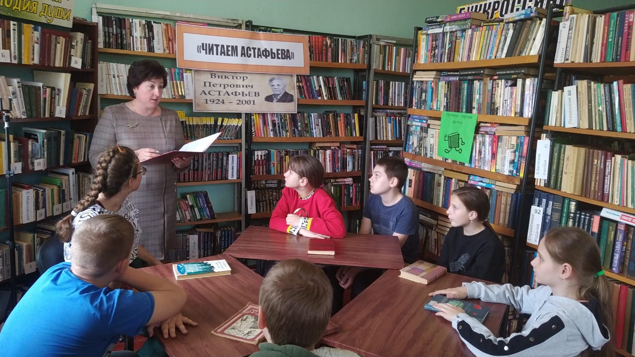 С целью популяризации творчества Виктора Петровича Астафьева среди детей, а также приобщение их к творчеству писателя, воспитание у молодого поколения таких нравственных качеств, как милосердие и сострадание, ответственность и отзывчивость, чувства долга и патриотизма 19 апреля в Туркинской библиотеке, филиале №1 состоялась литературная пятиминутка-акция «Читаем Астафьева». Мероприятие было проведено в два этапа: для старших и для младших школьников. Дети узнали о жизни и творчестве великого писателя. Детьми были прочитаны отрывки из рассказов В.П. Астафьева: «Зачем я убил коростеля», «Конь с розовой гривой», «Где-то гремит война» и др. Для младших школьников библиотекарь прочла рассказ Виктора Астафьева «Васюткино озеро».