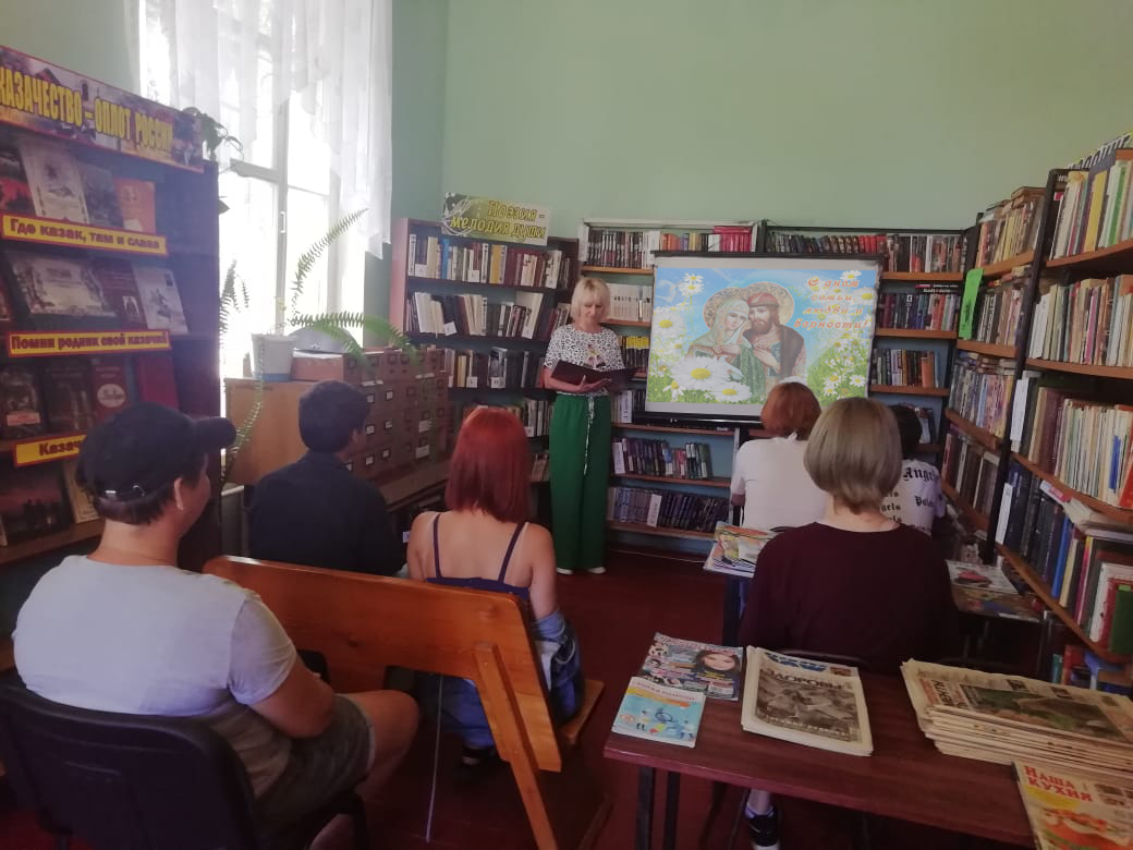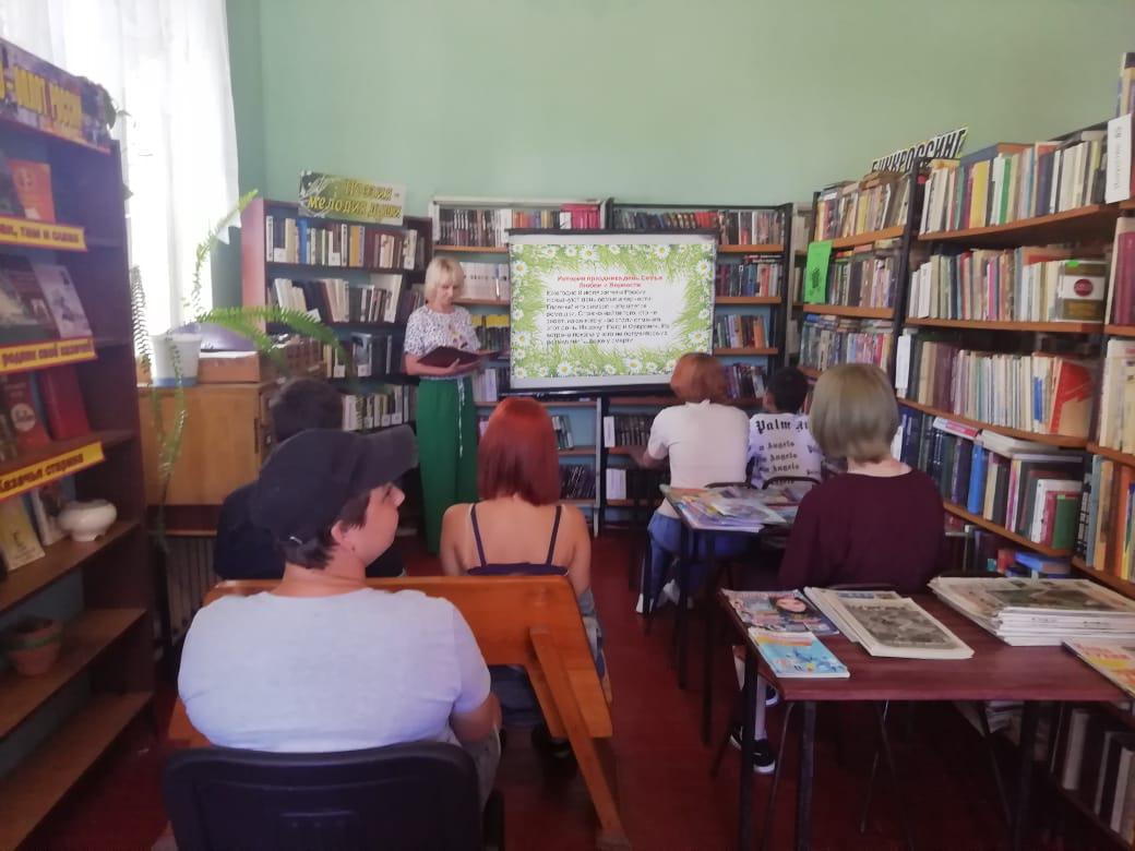 8 июля в Туркинской библиотеке, филиале №1 для юношества прошел литературный час «Венец всех ценностей-семья» В ходе мероприятия, библиотекарь, познакомила присутствующих с трогательной историей любви Муромских святых – Петра и Февронии, рассказала о супружеской верности и чести, также участники мероприятия узнали о символе праздника – ромашке. Присутствующие с удовольствием послушали притчи "Что такое счастье", "Что важнее".