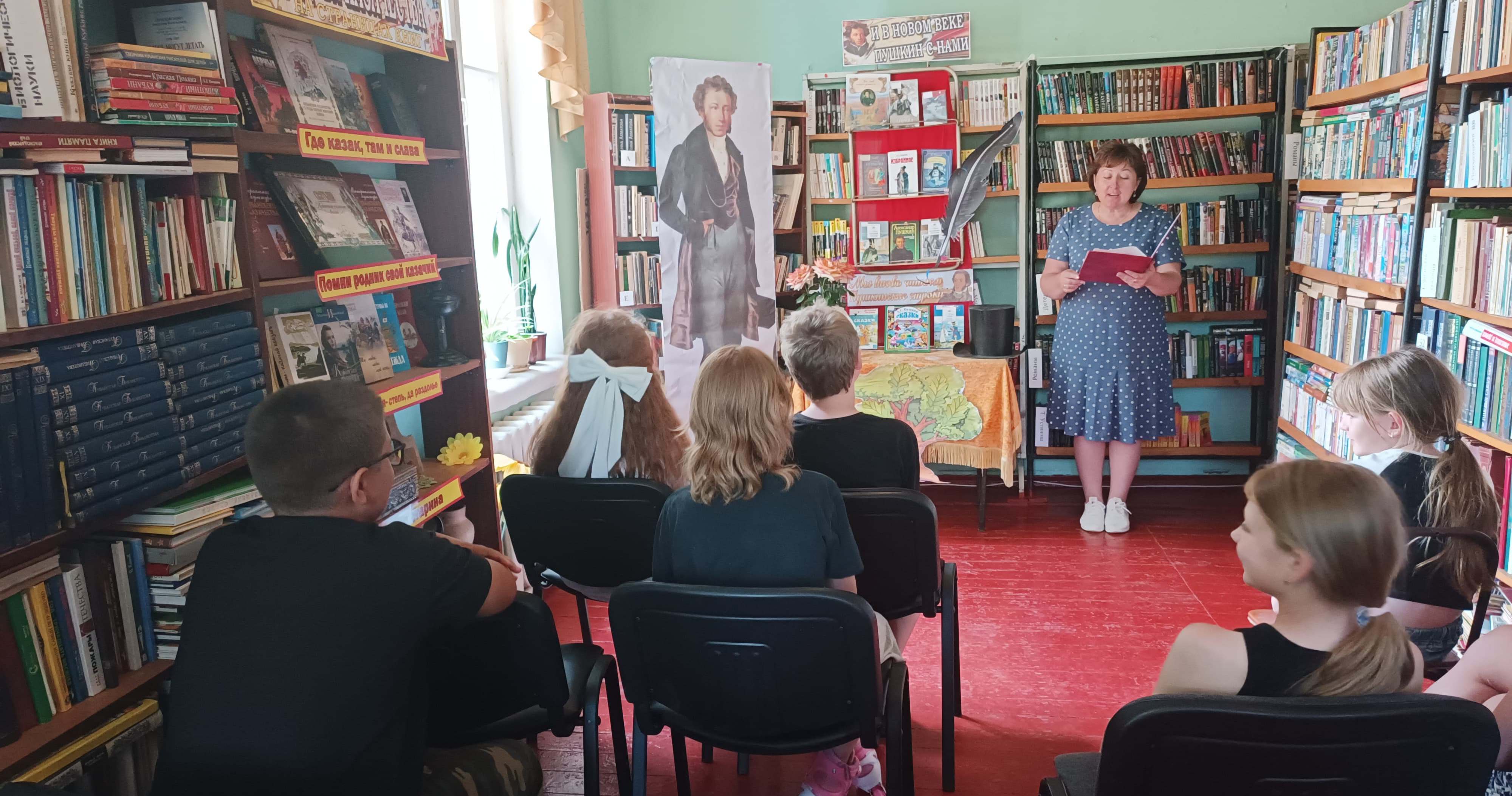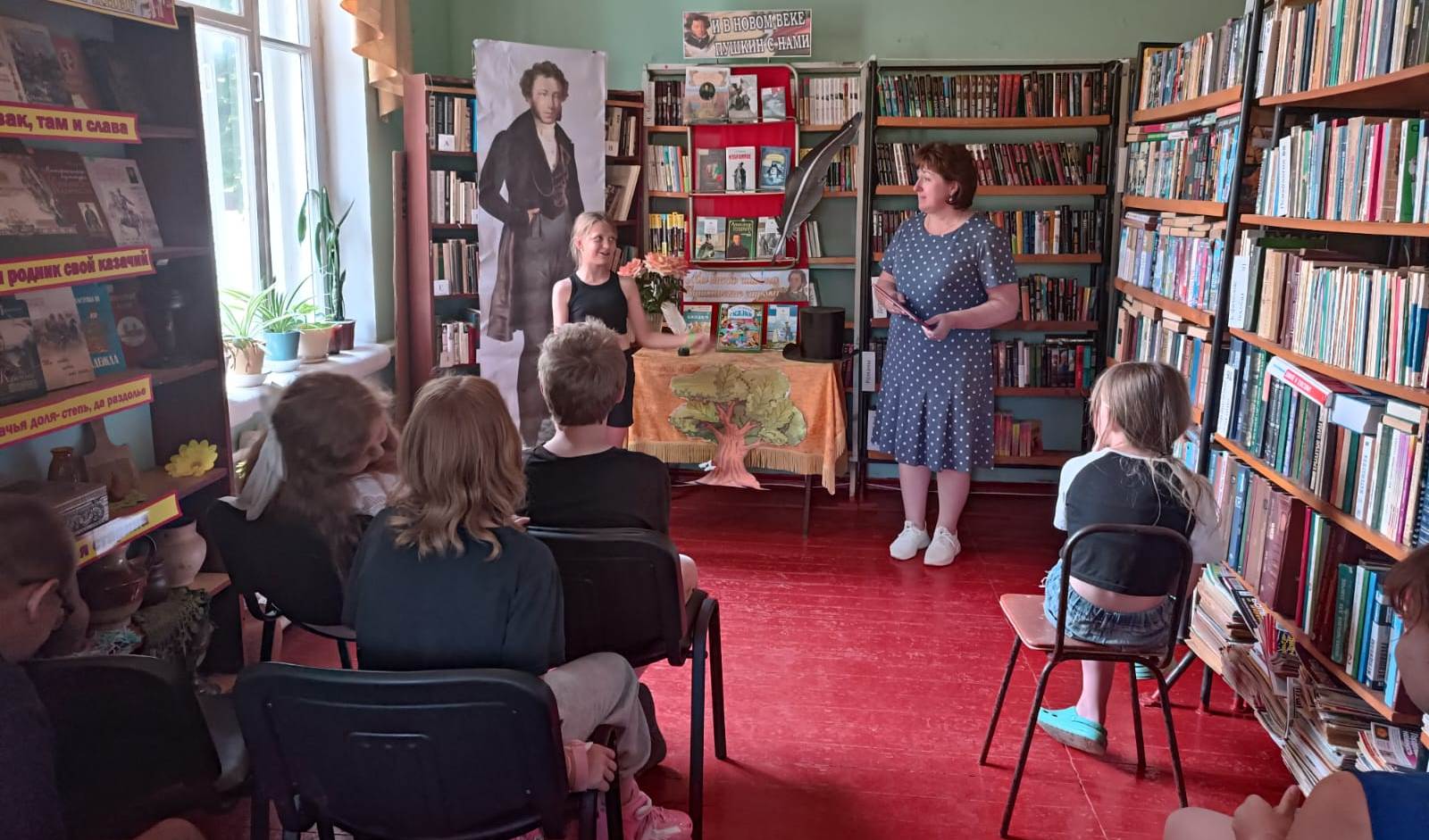 На мероприятии ребята узнали, какую роль в судьбе и творчестве Пушкина сыграла его няня Арина Родионовна, к которой он на протяжении всей своей жизни сохранял трогательное отношение, нашедшее отражение в стихах и личных письмах. Весёлые конкурсы и викторины закрепили знания. По прочитанным фрагментам из произведений Пушкина дети отгадывали названия сказок великого русского классика, разгадали сказочный кроссворд и загадки, отвечали на каверзные вопросы литературной викторины. Присутствующие с удовольствием вспомнили свои любимые произведения, зачитывали отрывки из стихотворений и сказок. Завершилось мероприятие обзором книжной выставки «И в новом веке Пушкин с нами». В ходе мероприятия ребята показали отличные знания творчества великого русского писателя