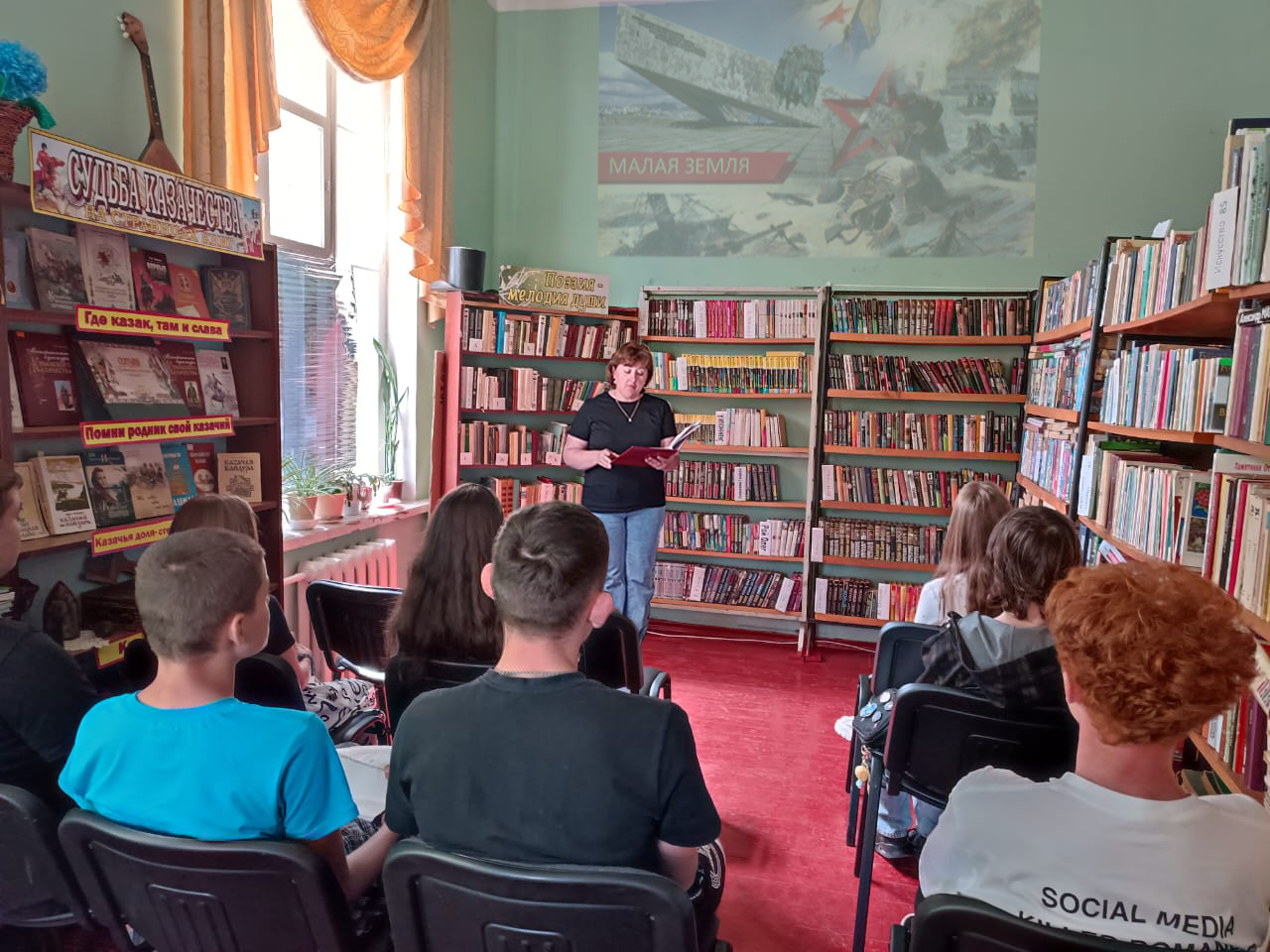 В Туркинской библиотеке, филиале №1 Белоглинского района, 9 августа состоялось третье мероприятие в рамках цикла патриотических чтений Победы «Не забывайте о войне, держите флаг победы выше» в рамках очно-заочной литературно-исторической Вахты Памяти «Живет Победа в поколениях: подвиги дедов и прадедов помним, чтим, поклоняемся» Краснодарской краевой библиотеки имени И. Ф. Вараввы. В ходе встречи прошло чтение отрывков и оживленное обсуждение документальных новелл из книги Георгия Владимировича Соколова «Малая земля». Этот сборник рассказов посвящен мужеству и героизму участников легендарного десанта на Мысхако, что под Новороссийском, в 1943 году. Особое внимание было уделено личности самого автора, Георгия Соколова, который сам был непосредственным участником тех грозных событий. Его произведение – это не просто личные воспоминания, а результат кропотливой работы по сбору свидетельств выживших десантников, благодаря чему были созданы документальные новеллы, воспевающие героизм моряков и солдат. Гости мероприятия смогли прикоснуться к истории героической обороны Малой земли. Помимо рассказа о мужестве и стойкости советских солдат, совершили виртуальное путешествие по Мемориальному комплексу "Малая Земля". Это позволило им не только узнать о событиях тех лет, но и почувствовать атмосферу этого памятного места, увидеть его своими глазами, пусть и в цифровом формате. Также участники познакомились с информацией о ежегодной акции «Бескозырка» и получили возможность ознакомиться с литературой, рассказывающей о городе-герое, включая упомянутую книгу Георгия Соколова.