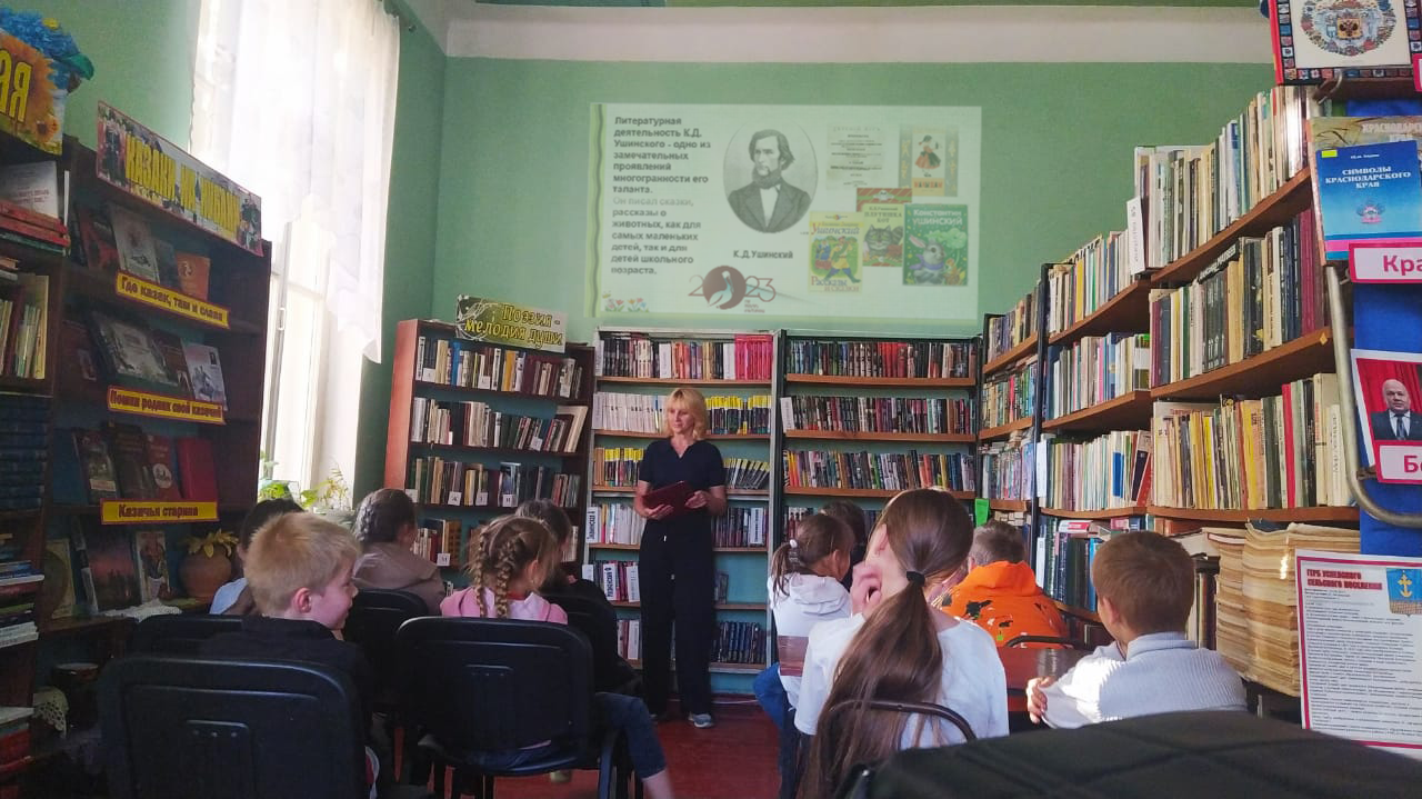 В ходе мероприятия ребята узнали о жизни и творчестве писателя - К. Д.Ушинского, который известен как великий русский педагог и детский писатель.Ребята познакомились с литературным наследием писателя и вспомнили самые известные детские произведения Константина Ушинского, узнали, что его произведения написаны простым языком и несут в себе глубокий смысл. Они - о добре, справедливости, трудолюбии, природе.