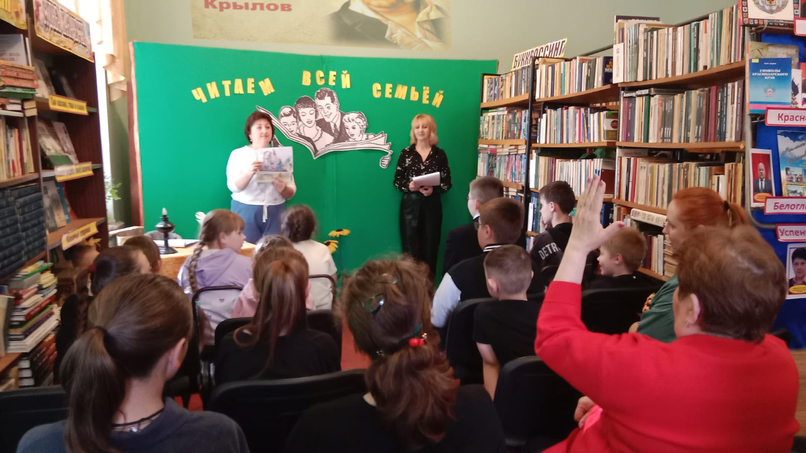 20 апреля 2024г Туркинская библиотека , филиал №1 приняла участие во Всероссийской акции «Библионочь» . В этом году акция прошла под девизом «Читаем всей семьей». Библионочь началась с литературной гостиной «Семью сплотить сумеет мудрость книг» для читающих семей и гостей библиотеки. Гостей мероприятия ждал незабываемый вечер читательских удовольствий и хорошего настроения! Библиотекари рассказали о том, как важно читать в любом возрасте, что книги – добрые и умные друзья. Участники мероприятия с помощью цветика-семицветика отправились на остров сказок и приняли участие в играх, ответили на вопросы викторины, отгадали загадки о книгах и литературных персонажах, постарались вернуть в свою сказку потерянные вещи. В поддержку чтения для гостей библиотеки распахнул свои двери экспромт-театр «Муза и Таланты». Присутствующие познакомились с жизнью и творчеством великого баснописца И.А.Крылова. Гости с удовольствием вспомнили поучительные басни, отгадывали персонажей по иллюстрации. Ребята из клуба «Непоседы» подготовили для зрителей театрализацию басни «Стрекоза и Муравей». Были подведены итоги Всекубанской акции «Читаем всей семьей». В акции приняли участие две семьи. Участники награждены грамотами и призами. Разговор по душам «Любимые традиции русского чаепития» завершил «Библионочь». За столом с самоваром звучали душевные стихи, рассказы о семье, о родительском доме. На протяжении всей «Библионочи» работала фотозона «Читаем всей семьёй».