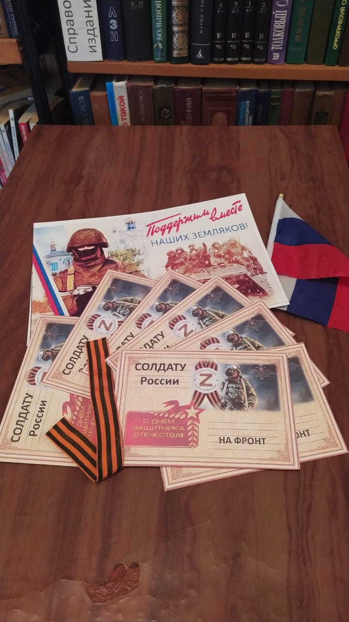 12 февраля 2024 года читатели Туркинской библиотеки, филиал №1 приняли участие в военно-патриотической акции "Пишу тебе, Герой", цель которой поздравить с Днем Защитника Отечества и выразить поддержку и благодарность нашим военнослужащим, которые находятся в зоне спецоперации на Украине.
