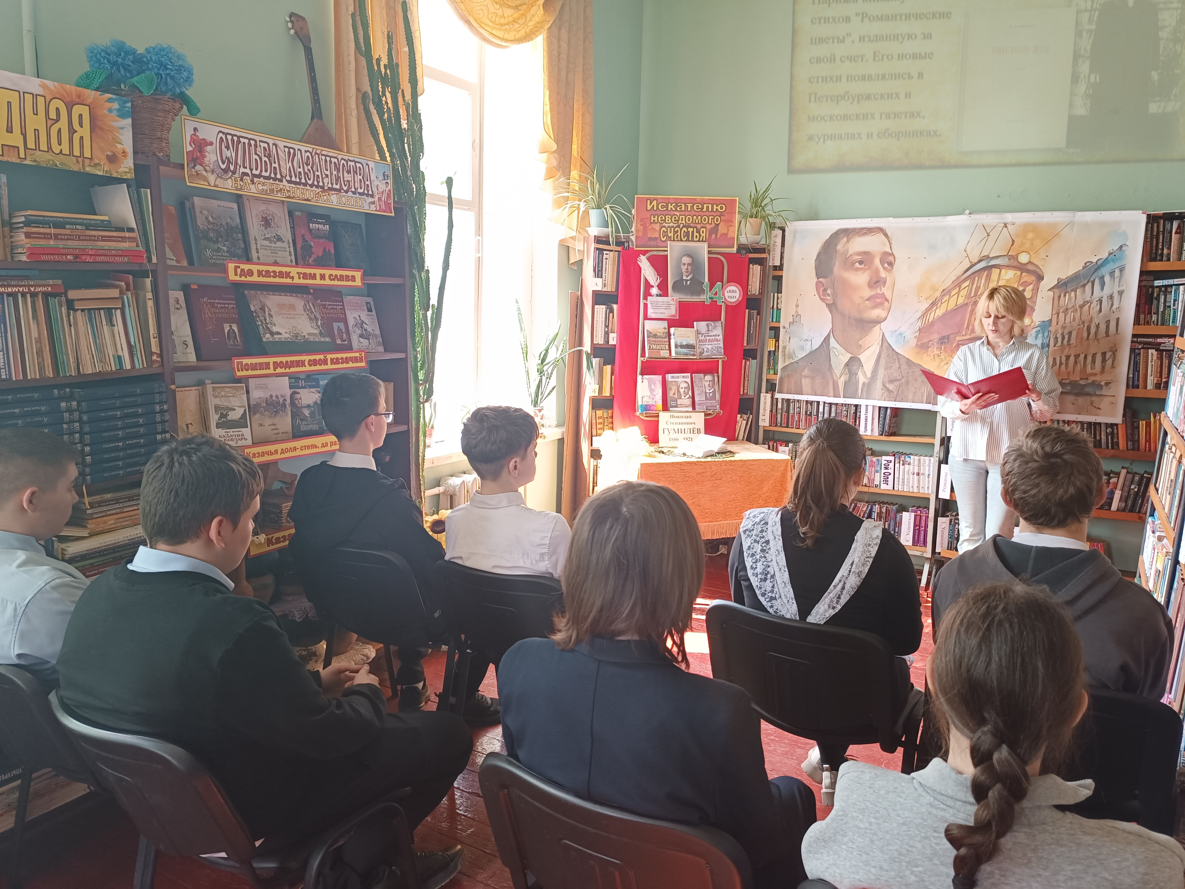 Николай Гумилёв – поэт-воин, поэт-странник, поэт-романтик. В 2026 году исполняется 140 лет со дня рождения поэта. Его поэзия необычна для русской литературы: она полна экзотических стран, мужественных героев и деятельного взгляда на мир. Жизнь поэта не менее увлекательна, чем его творчество – он охотился на диких зверей в африканской саванне, героически сражался на фронте, любил самых известных женщин своего времени. Более полувека имя Николая Гумилёва оставалось под негласным запретом в советском литературоведении как «контрреволюционное», и лишь с конца 1970-х гг. его творчество получило научное обоснование в трудах филологов. В наши дни поэзия Гумилёва признана одной из вершин Серебряного века. В строгой выветренности его стиха, чистоте поэтической формы, совершенстве художественного слова Николай Степанович Гумилёв оказался прямым наследником и последователем русской поэзии пушкинской поры. 26 марта в рамках «Пушкинской карты» Туркинская библиотека, филиал №1, распахнула свои двери для всех ценителей поэзии. Здесь состоялся литературно-поэтический салон «Искателю неведомого счастья», посвященный творчеству Николая Гумилёва – одного из самых ярких и самобытных поэтов Серебряного века. Участники мероприятия смогли совершить увлекательное путешествие в удивительный мир Гумилёва – человека, в котором гармонично сочетались черты мечтателя и романтика, отважного капитана и пылкого рыцаря. Гости салона проследили его жизненный путь, узнали о семье, о личных переживаниях, которые нашли отражение в его творчестве. Особое внимание было уделено поэзии Гумилёва. Звучали его стихи, наполненные глубоким смыслом, яркими образами и неповторимой музыкальностью. Участники смогли окунуться в мир его приключений, экзотических стран, философских размышлений и, конечно же, любви, прикоснуться к той искре, которая зажигала в нем неугасимое стремление к познанию, к преодолению границ, к поиску того самого, неуловимого, «неведомого счастья». Это был вечер, наполненный глубокими размышлениями, яркими эмоциями и, конечно же, прекрасными стихами - настоящее погружение в мир великого поэта, который и сегодня продолжает вдохновлять и волновать сердца читателей.